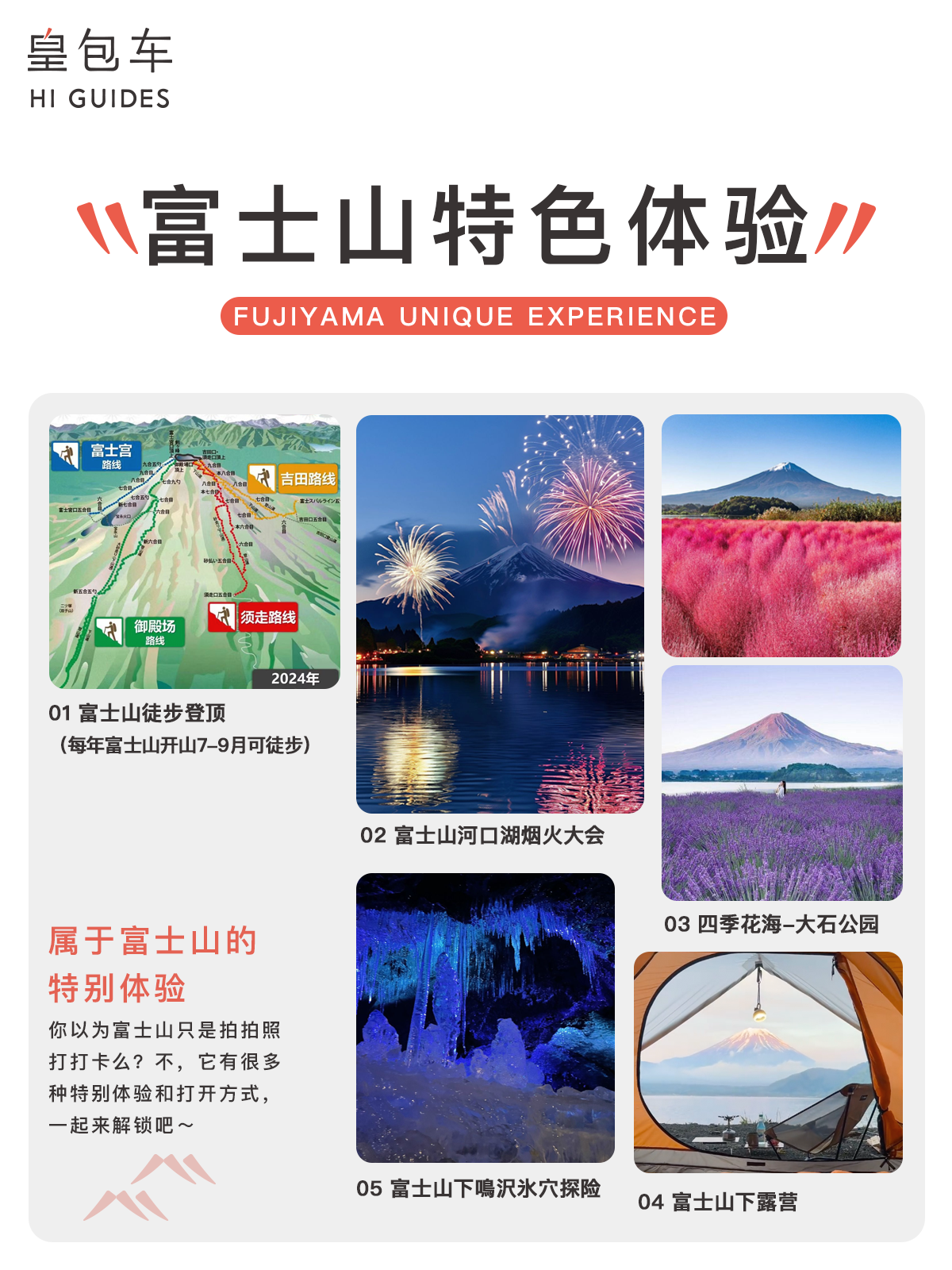 🌅日出:体验“富士山日出”,从山顶观赏日出非常震撼。
