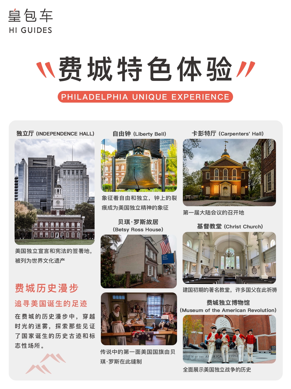 🎆 独立厅(Independence Hall):美国独立的象征,《独立宣言》和《美国宪法》在此签署。