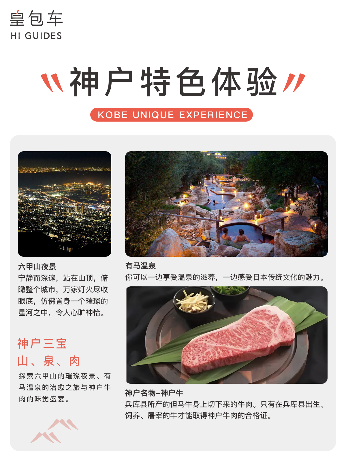 这篇城市概览从神户的地理位置、城市内最经典的旅行景点分布、美食推荐以及特色体验几个方面做了神户的旅行介绍,让我们一起来了解神户吧~