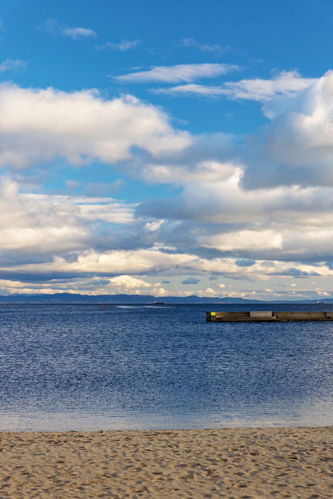 我们从大阪到须磨站,靠左边窗户透过去便能看到大海,须磨站下了车走出去就是须磨海滨公园。