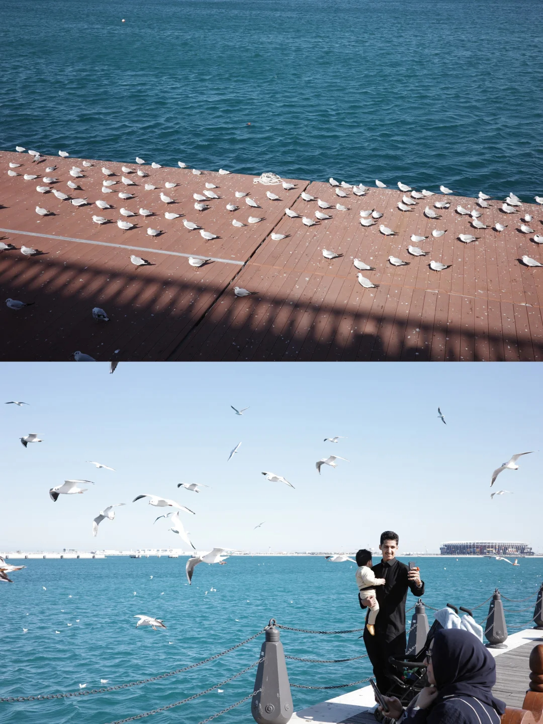 Mina district是这次去多哈我最喜欢的地方,基本看不到啥亚洲面孔,人不多,路边也有很多当地特色餐厅,买包薯条剩一半在海边喂海鸥,在长椅上放空真的超舒服。